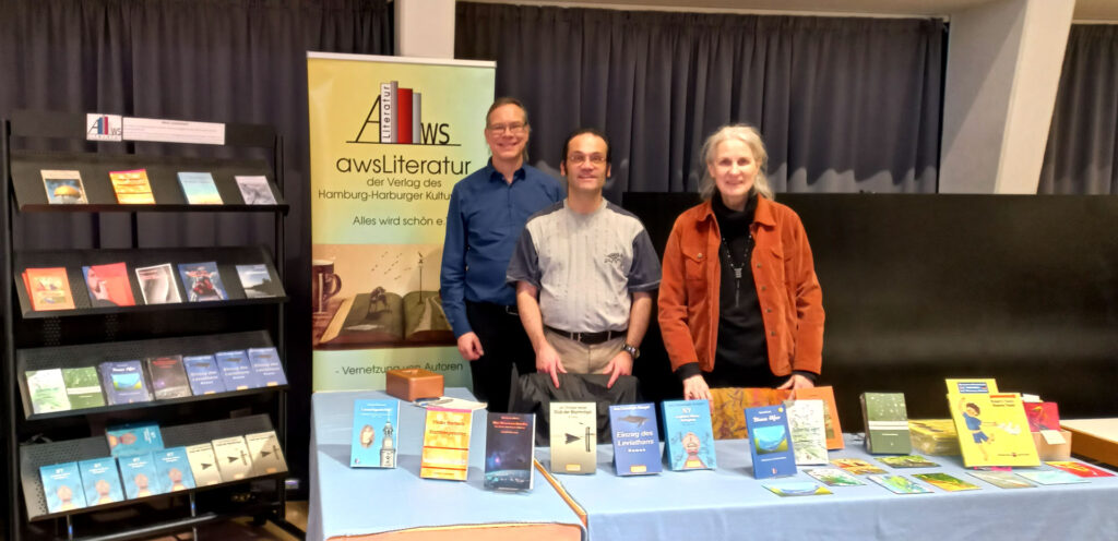 Der Verlag awsLiteratur konnte am 15. November im Kultur- und Bildungszentrum KuB der BookOldesloe 2025 sein vielfältiges Buchprogramm präsentieren. Es reicht von Krimis, Fantasy, Autobiografien, Erzählungen bis hin zu Kinderliteratur und Lyrik. Aber auch Romane zwischen Fiktion und Wirklichkeit wie der neu erschienene Roman “Einzug des Leviathan” von Jan Christoph Nerger bereichern das Programm.